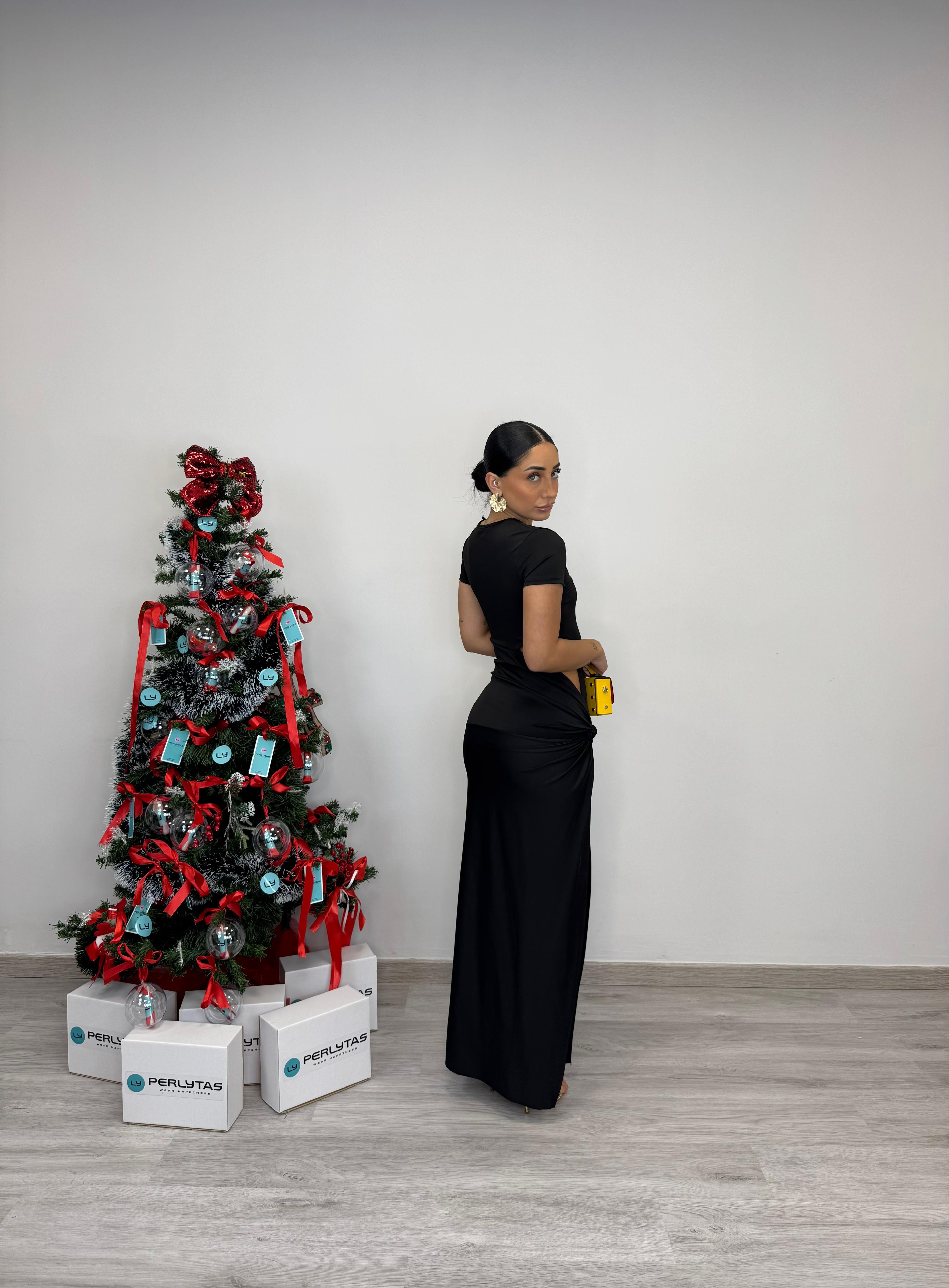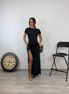 - Abito modello tubino lungo con spacco