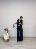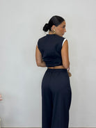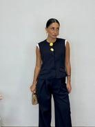 - Gilet e pantalone a palazzo con elastico in vita