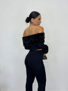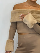 • Maglia maniche lunghe con scollo a barca e pelliccia