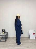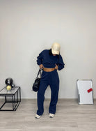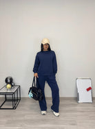 • Felpa over e pantalone a palazzo con elastico in vita