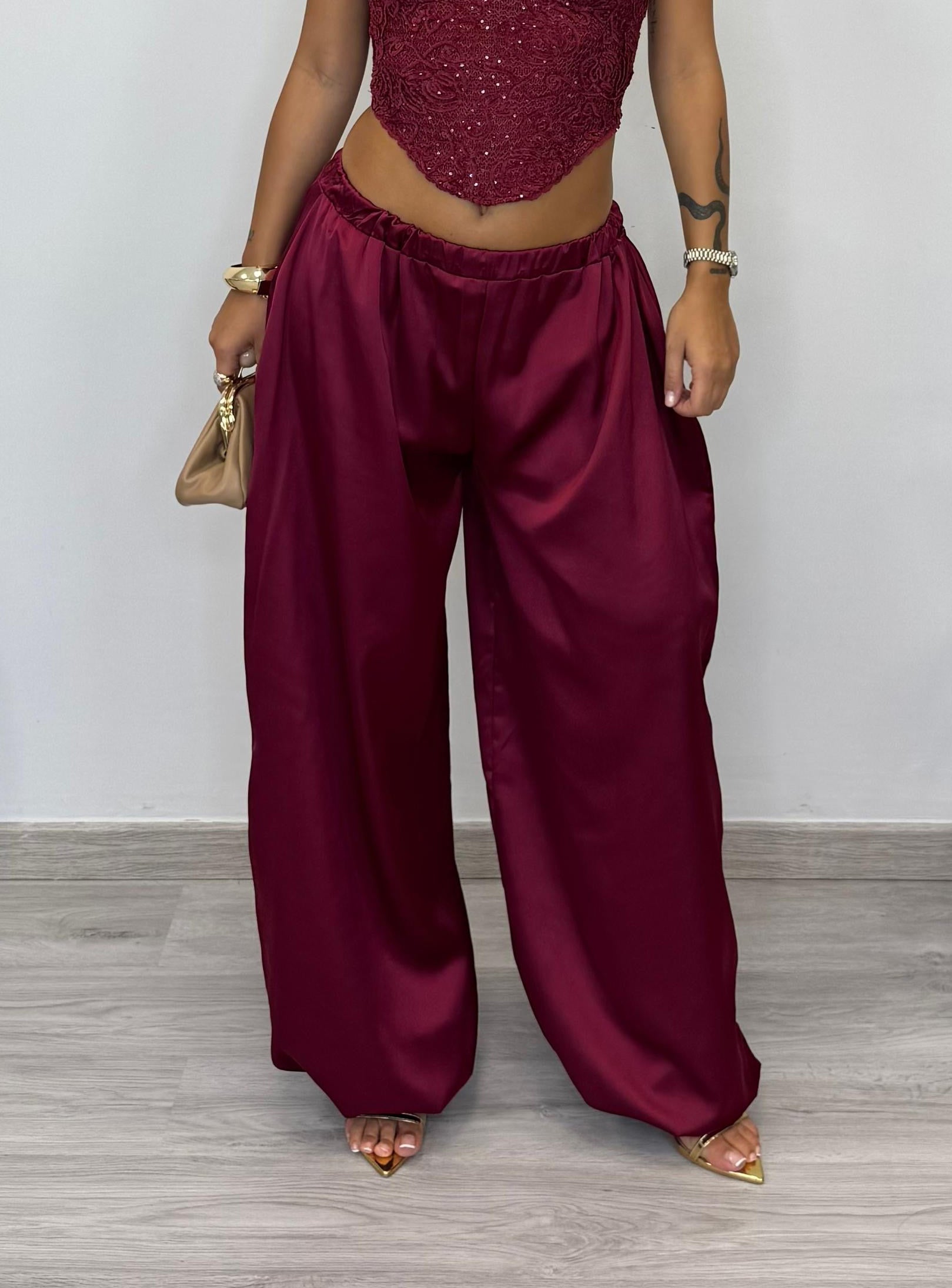 • Pantalone con elastico in vita e alle caviglie