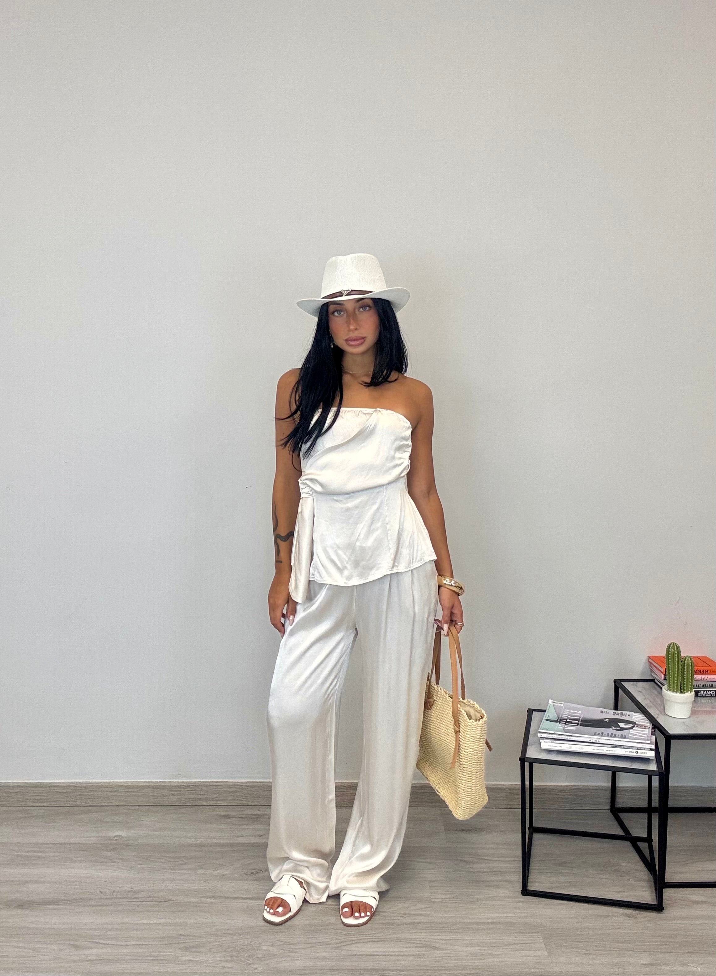 - Pantalone modello a palazzo con elastico in vita