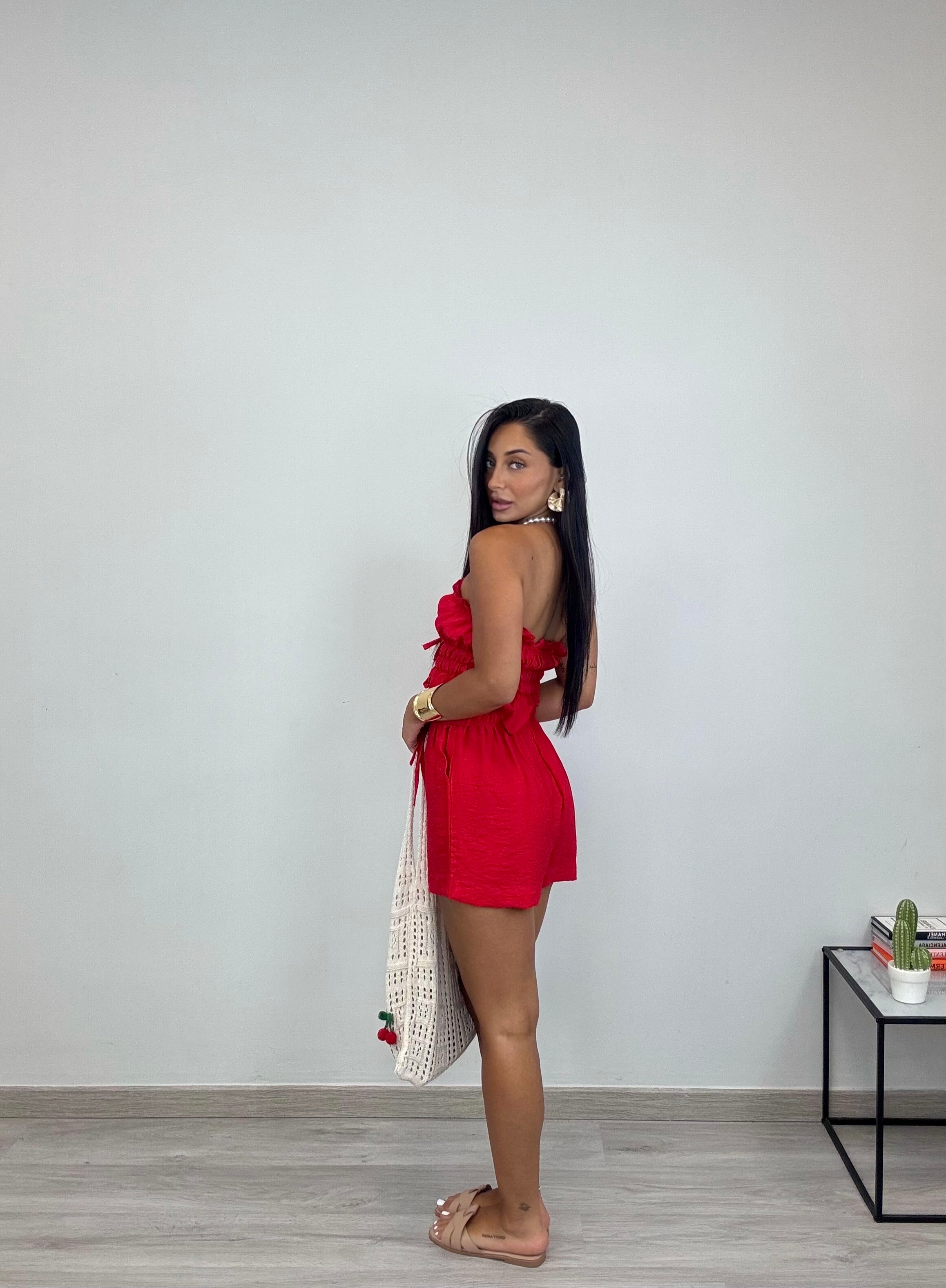 - Top regolabile con laccetti e pantaloncino con elastico in vita