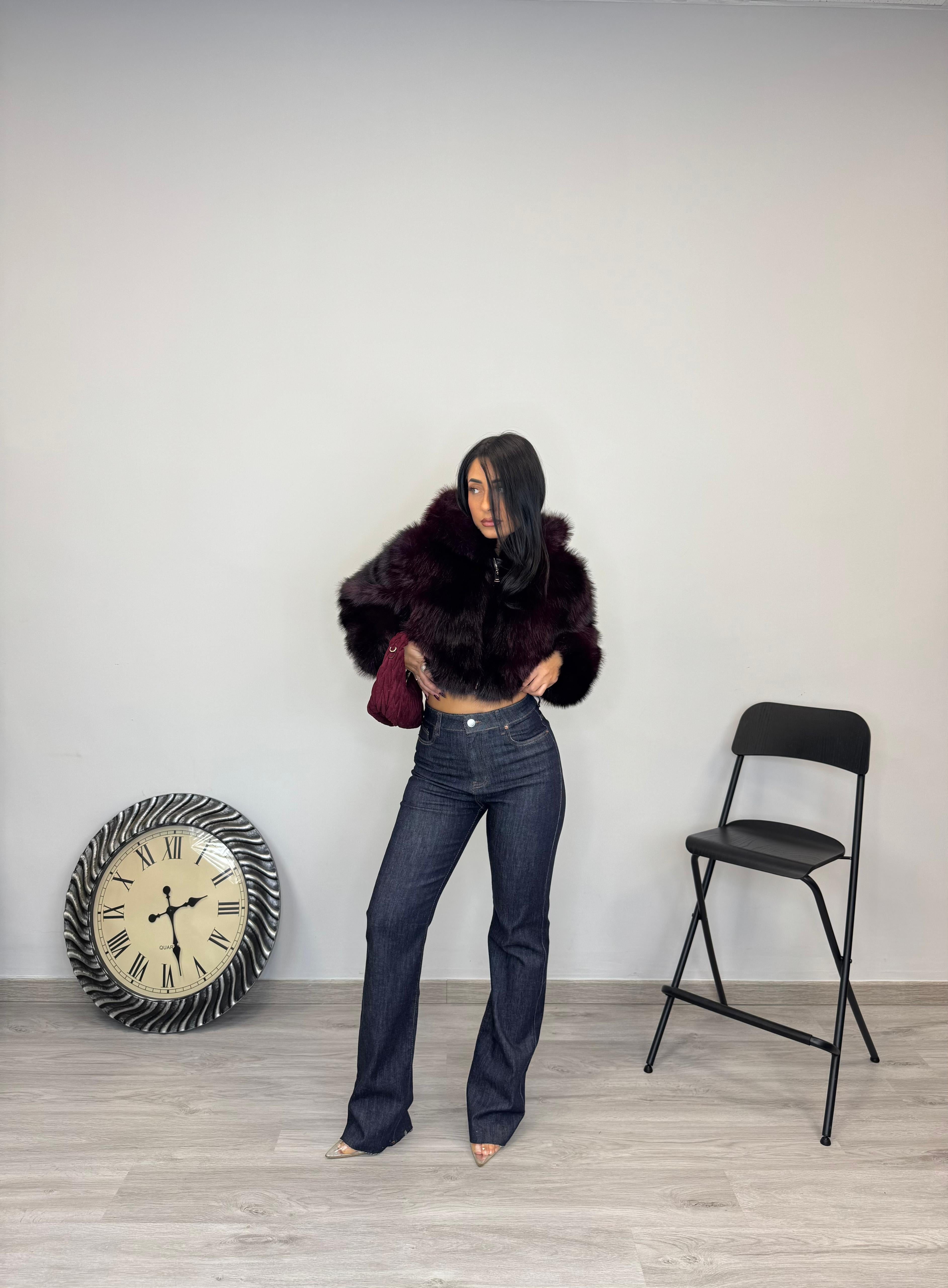 - La modella veste la taglia 36 ed è alta 1,65