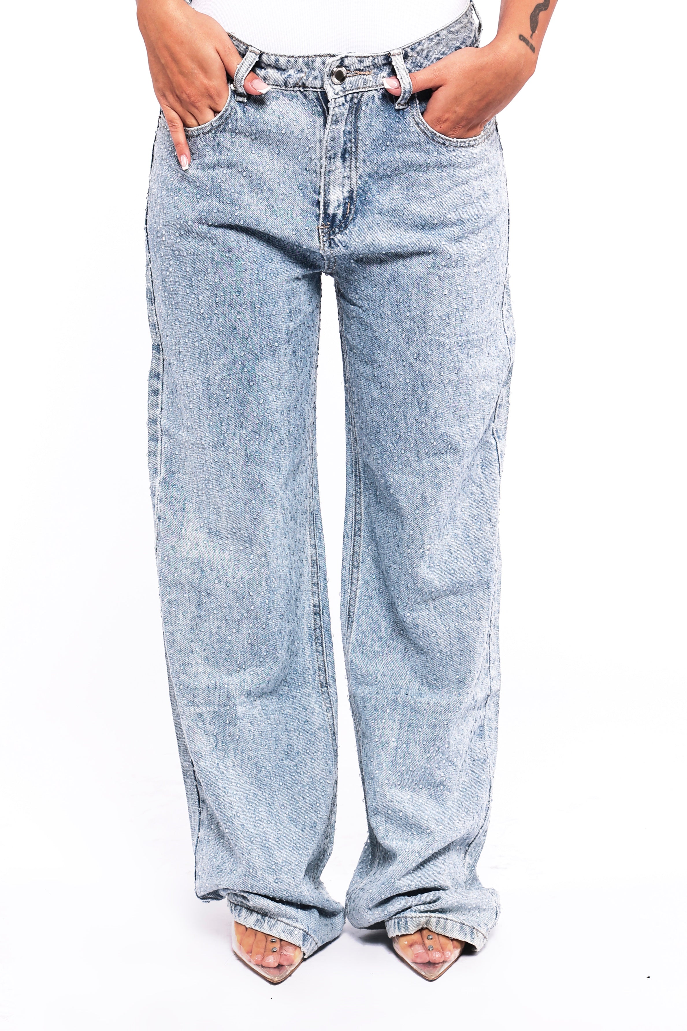- Jeans a palazzo con brillantini